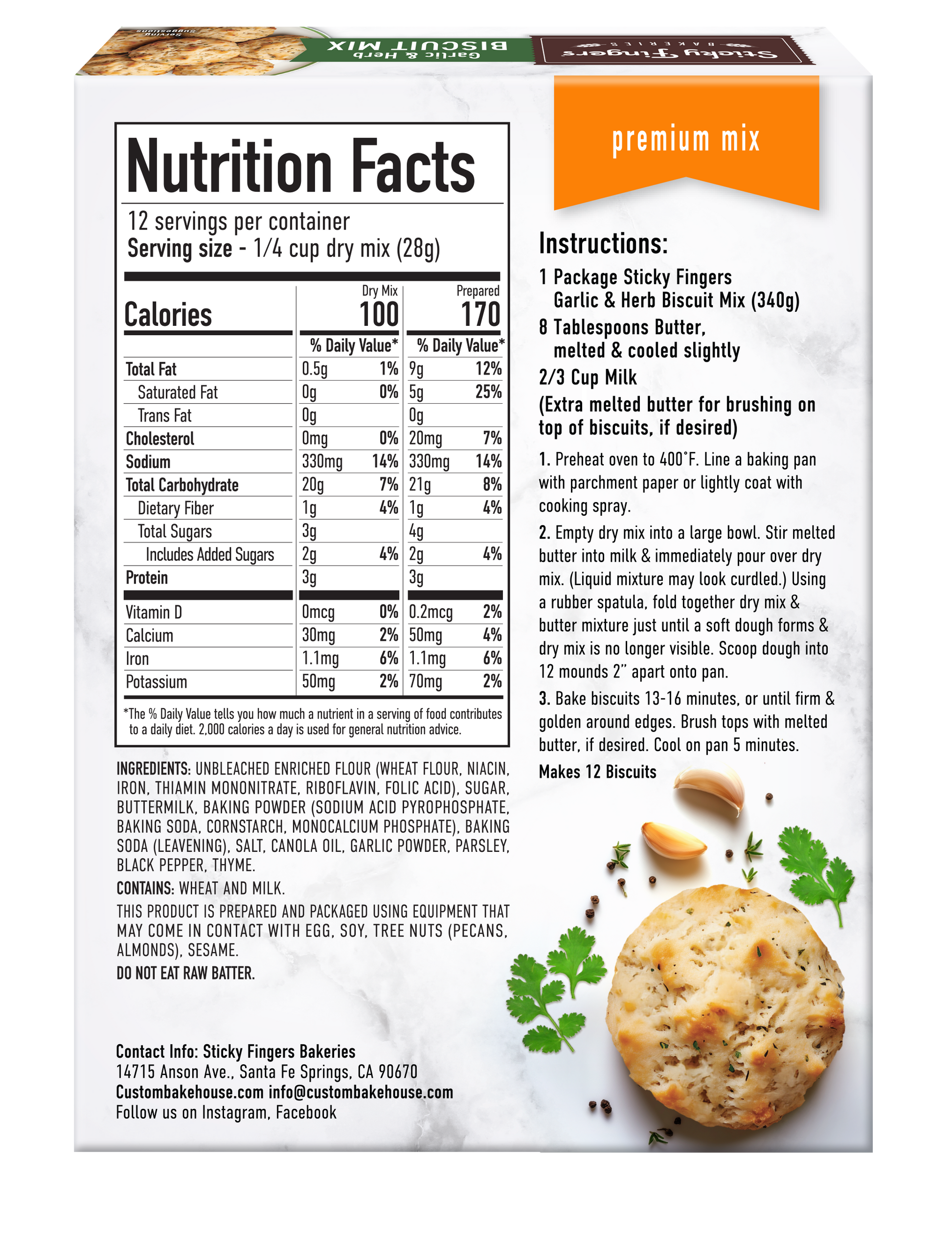 Freshly baked biscuits without the fuss? Yes, please! Sticky Fingers Bakeries Garlic & Herb Biscuit Mix makes it easy to enjoy the irresistible aroma and flavor of homemade biscuits, minus the artificial ingredients.